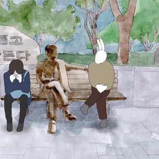 <배다리뎐> 끝나고 2015년도니까 애가 7살 때였구나. 계속 제작지원에 냈는데 안 되다가 서울시 공모가 있어서 급하게 썼어요. 실제 토끼 탈을 씌워서 촬영을 하고 로토스코핑을 하면 쉽지 않을까 해서 했는데, 그것도 어렵더라고요. 작화는 제가 다 했어요. '아트웍에 조금 더 신경을 쓸 걸 그랬나'라는 생각이 들긴 했어요.