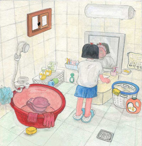 <창조기>는 졸업 작품이었고, <파인드 미>는 졸업 후에, 작업을 계속할 것인가 말 것인가에 대한 질문을 하던 시기에 만들었어요. 저는 실기가 없는 디자인 학부를 나왔기 때문에 그림을 제대로 배운 적이 없어요. 두 작품은 현실 배경이 없잖아요. 제 상상과 많은 자료로 만들었어요.